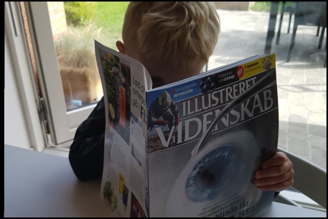 Det er helt tydeligt, at Bjørn allerede har adopteret samme lyst og glæde ved bøger, som sin mor. Han ELSKER at få læst historier, læse i bøger og blade og er altid nysgerrig på noget nyt. Jeg har aftalt med ham, at hver gang Illustreret Videnskab kommer i postkassen, må han kigge i det først og vælge 3 ting, som vi skal læse om, og jeg PRØVER at forklare det på børnesprog. Prøv at læs denne artikel om læsning, vaner og vores kære børn.