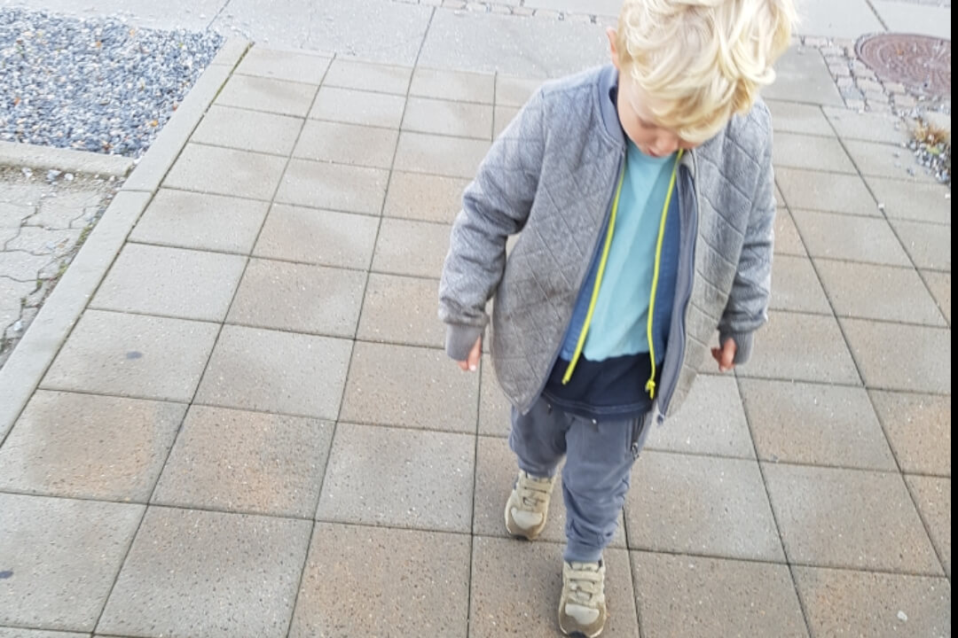 I stedet hoppede jeg med op på kanten og udfordrede Bjørn, da kanten stoppede. “Nu må du ikke rører stregerne, asfalten i kanten er lava, gå balance på kantstenen, gå kun ligeud eller 90 grader til højre eller venstre ved fliserne….”. Turen op og handle blev så sjov, historierne fik liv, fortorvet blev en forhindringsbane, hvor vi fik trænet motorik, og vi hyggede op.