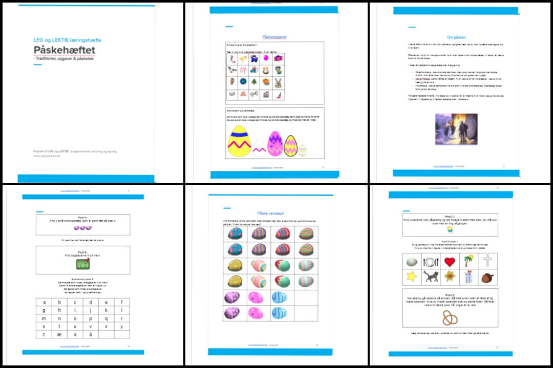 Læringshæftet “Påskehæftet” er i alt 15 sider incl. opgaver, spil og påskeløb. Du kan nøjes med at printe dele af hæftet og læse resten på computeren.