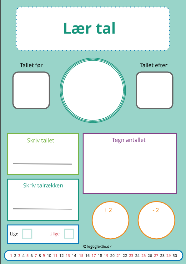Store cirkel i midten: Skriv tallet, som dit barn skal arbejde med.