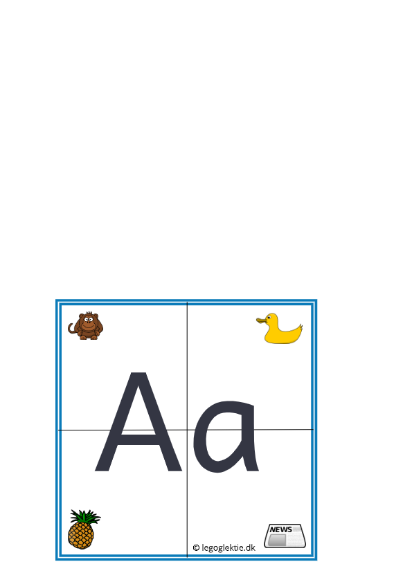 Lรฆg brikkerne pรฅ bordet foran med forsiden op ad og lad dit barn finde de firkanter, som passer sammen og dermed bygge bogstavet. Dit barn kan enten prรธve sig frem indtil, det ligner et bogstav, eller det kan lytte sig frem ved at kigge pรฅ tegningerne i hvert hjรธrne, som starter med netop det bogstav.