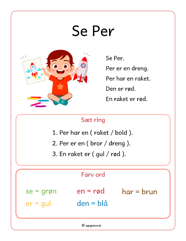 Læsehæftet her har til formål at styrke dit barns læsefærdigheder, og det er udarbejdet på en sådan måde, at det fremtræder visuelt indbydende. I teksterne er der fokus på læseforståelse, de 120 ord samt lydlette ord.