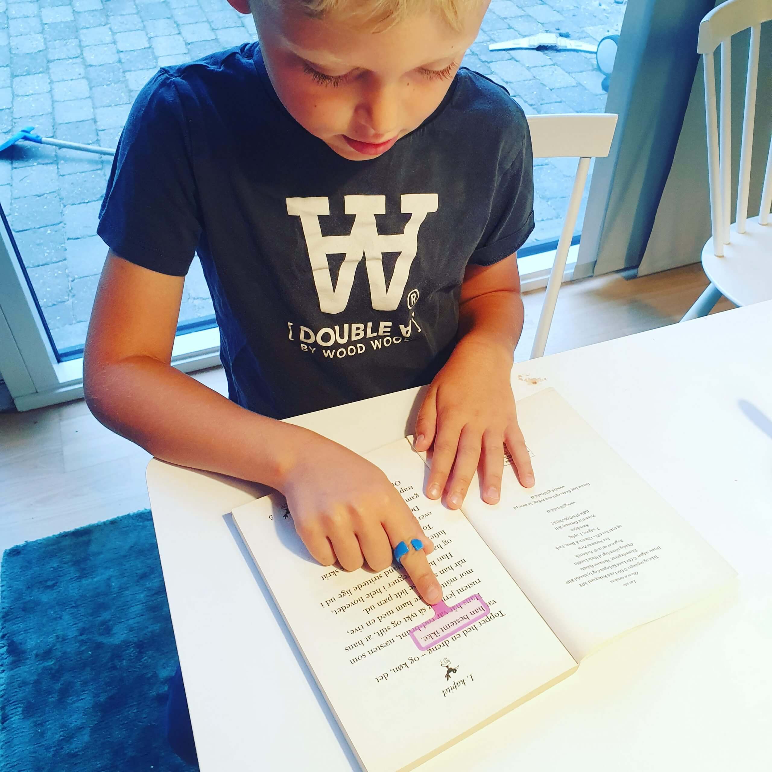 I går tog jeg mig sammen, og vi læste lidt i en svær bog. Bjørn havde svært ved at fokusere, så jeg kom i tanke og vores læselineal. HALLO, nærmest magi jo! Lige pludselig blev læsningen mere flydende og lettere for ham.