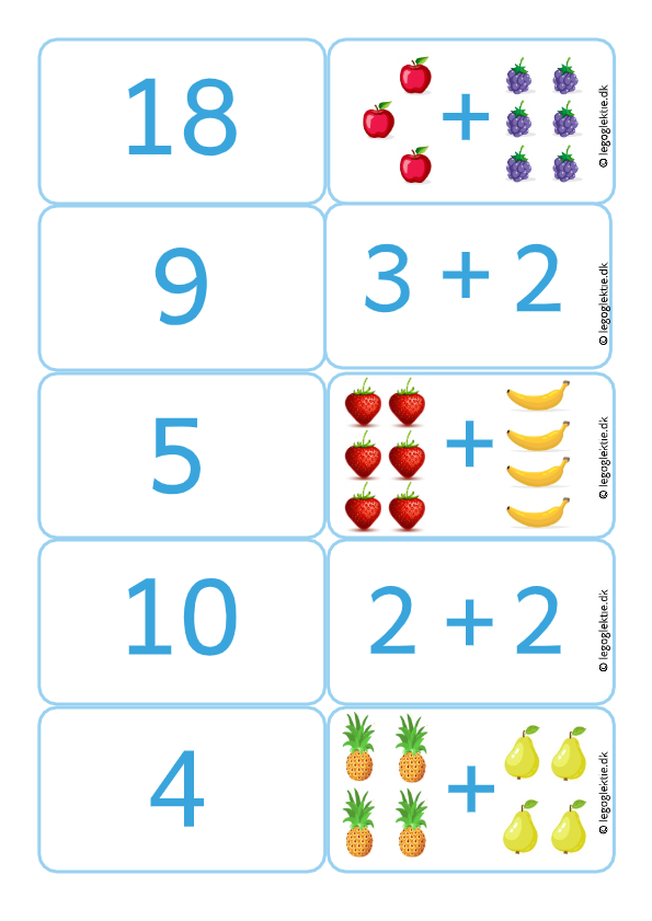 Domino gรฅr ud pรฅ at sรฆtte brikker sammen. Det vil sige, at brikkerne har to ender, hvor der et tal i hver (her er der regnestykker). Nu skal dit barn finde en brik, hvor en af enderne passer til den fรธrste brik, og de kan nu sรฆttes sammen.