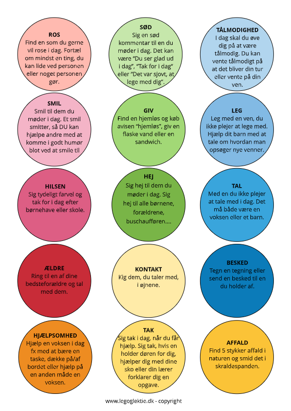 Mรฅlgruppe: Fra 4 รฅr og op til voksne! Hvis dit barn ikke er sรฅ gammelt, sรฅ lad det kun trรฆkke en “opgave” hver anden dag eller mรฅske 2 i ugen. De stรธrre bรธrn kan sagtens klare en opgave hver dag.