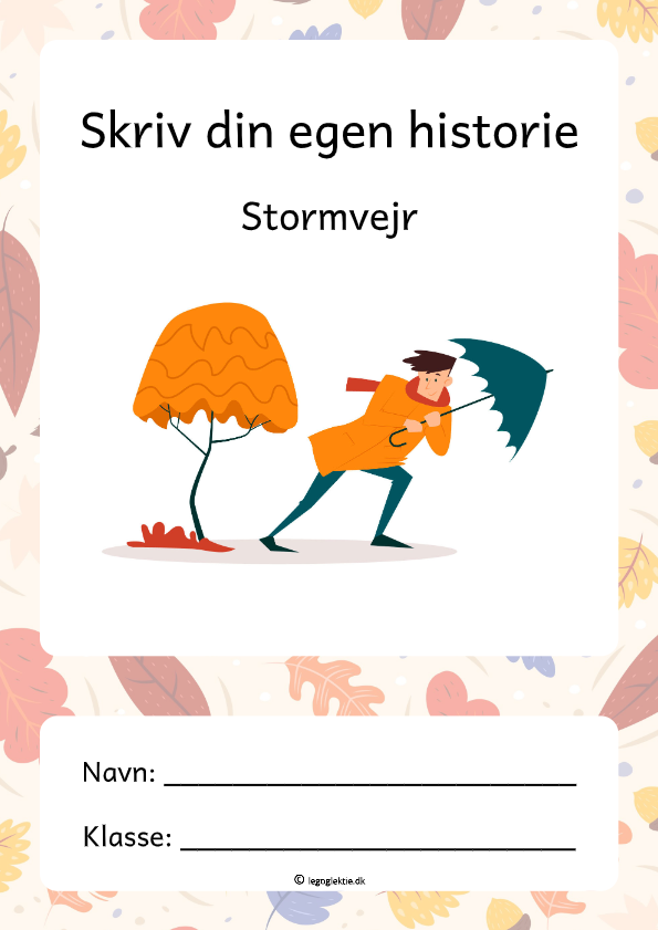 I hæftet skal dit barn lave en historie, som handler om efteråetr. Ved at lave skriveopgaver træner dit barn sine sprog- og kommunikationsfærdigheder. Det vil sige både ordforråd, grammatik og stavning. En skriveopgave giver også dit barn mulighed for at træne sin kreativitet og fantasi. Hæftet giver dit barn en hovedperson, et sted og en handling, som historien skal skrives ud fra. Det kan være svært, at finde på en opdigtet historie, og derfor får dit barn givet nogle informationer, som opgaven skal skrives ud fra. I denne opgave skal dit barn finde på en historie om en brandmand, som skal sikre at alle byens borgere kommer i sikkerhed for et frygteligt stormvejr.