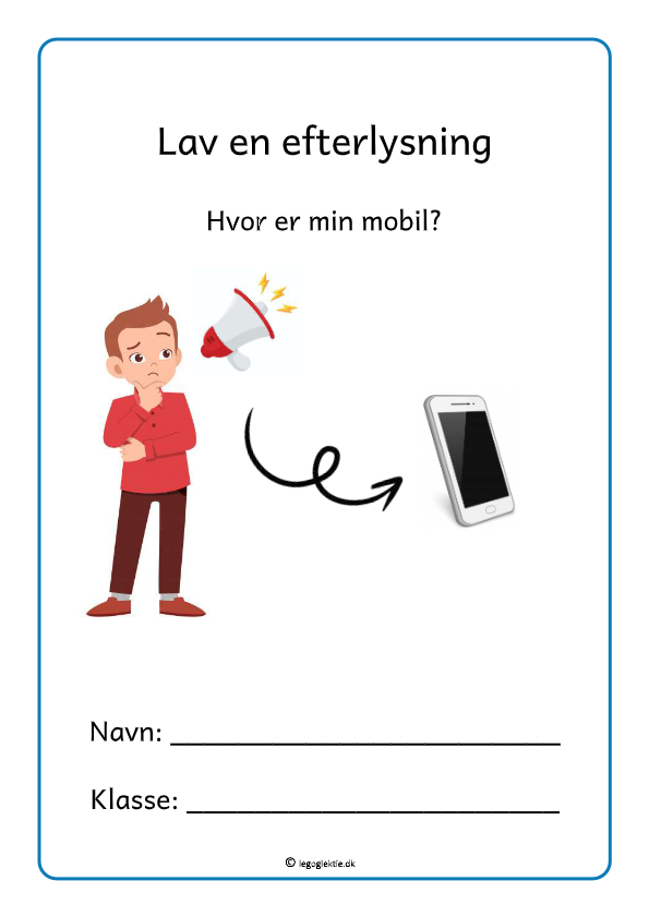 I denne skriveopgave skal dit barn lave en efterlysning af sin mobil. Dit barn skal trรฆne sine sprog- og skrivekompetencer gennem hele sin skolegang, hvor skriveopgaver som denne, kan bidrage til at dit barn udvikler disse. I skriveopgaver udvikler dit barn ogsรฅ sin evne til at vรฆre kreativ og fantasifuld. Opgaverne er dg lavet med stรธtte spรธrgsmรฅl, sรฅ dit barn har et udgangspunkt at gรฅ ud fra, da det kan vรฆre en udfordring at finde pรฅ en historie selv. Opgaverne er sjove, farverrige og intuitive. De er fyldt med farverige billeder, som kan vรฆre med at pirre dit barns fantasi.