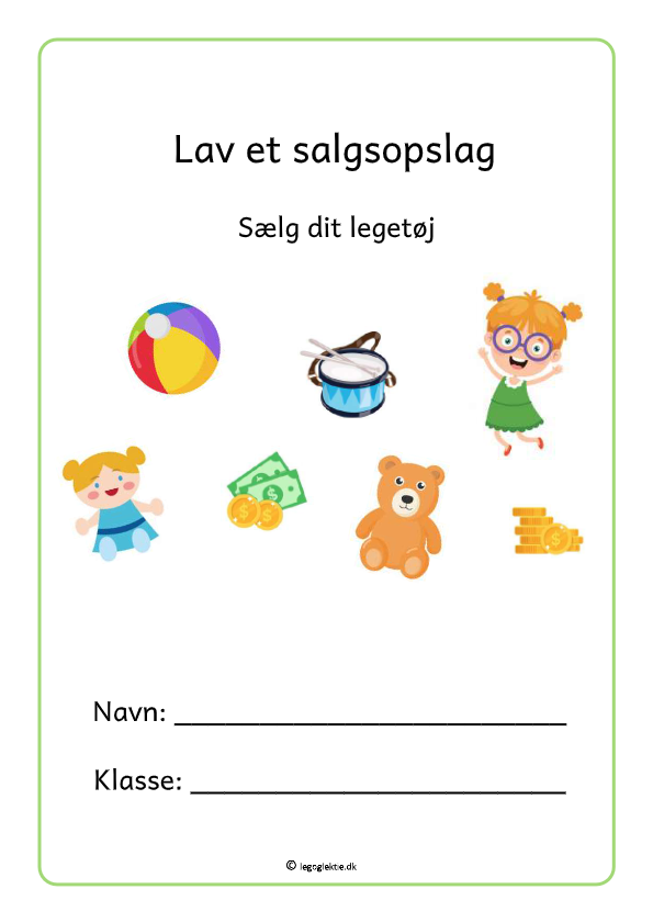 I denne skriveopgave skal dit barn lave et salgsopslag, hvor der skal sรฆlges legetรธj. Dit barn skal trรฆne sine sprog- og skrivekompetencer gennem hele sin skolegang, hvor skriveopgaver som denne, kan bidrage til at dit barn udvikler disse. I skriveopgaver udvikler dit barn ogsรฅ sin evne til at vรฆre kreativ og fantasifuld. Opgaverne er dg lavet med stรธtte spรธrgsmรฅl, sรฅ dit barn har et udgangspunkt at gรฅ ud fra, da det kan vรฆre en udfordring at finde pรฅ en historie selv. Opgaverne er sjove, farverrige og intuitive. De er fyldt med farverige billeder, som kan vรฆre med at pirre dit barns fantasi.