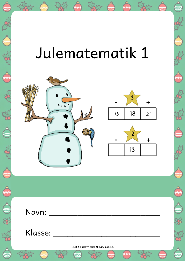 Her fรฅr et opgavehรฆfte fyldt med sjove og lรฆrerige matematikopgaver – alle sammen pakket ind i en masse hyggelige juleillustrationer. I hรฆftet kan dit barn arbejde med at tรฆlle, plus og minus. Hรฆftet kan f.eks. vรฆre med til at give dit barn en god og rolig start pรฅ morgnerne i december mรฅned. Hรฆftet kan ogsรฅ bruges som supplement til undervisningen.
