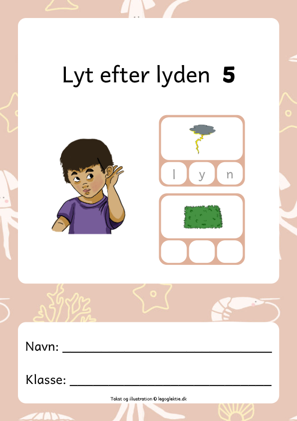 “Lyt efter lyden”-serien bestรฅr af 5 hรฆfter, som har et stigende niveau. Dette hรฆfte er det sidste i serien, og her skal dit barn kigge pรฅ billedet, og skrive hele ordet nedenunder. I det tidligere hรฆfter har dit barn fรฅet stรธtte ved, at nogle af bogstaverne allerede var skrevet. I dette hรฆfte er det vigtigt, at dit barn siger ordet hรธjt, og lytter efter alle bogstavernes lyde i ordet.