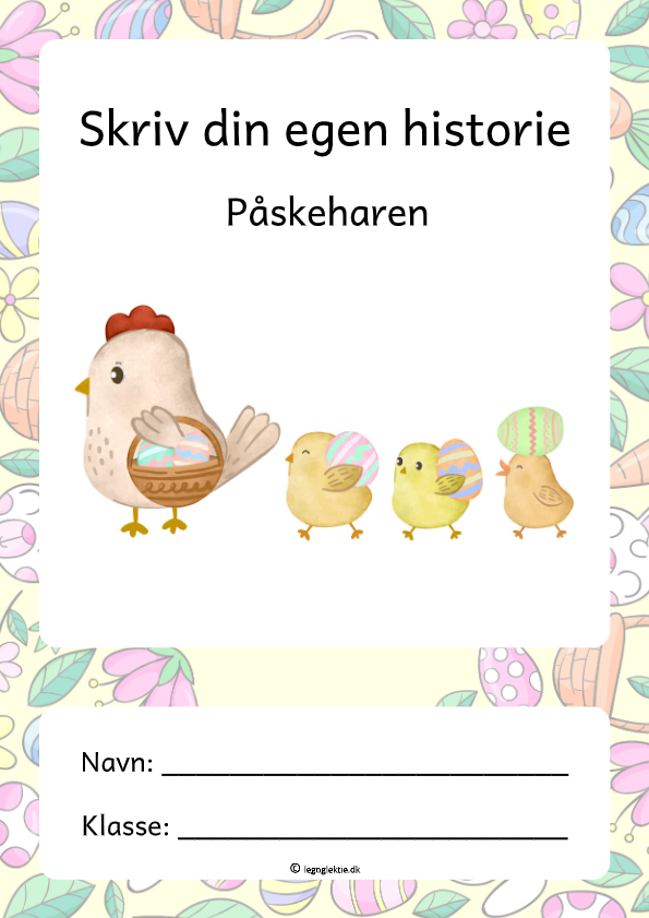 I hæftet skal dit barn lave en historie, som handler om påskeharen. Ved at lave skriveopgaver træner dit barn sine sprog- og kommunikationsfærdigheder. Det vil sige både ordforråd, grammatik og stavning. En skriveopgave giver også dit barn mulighed for at træne sin kreativitet og fantasi. Hæftet giver dit barn en hovedperson, et sted og en handling, som historien skal skrives ud fra. Det kan være svært, at finde på en opdigtet historie, og derfor får dit barn givet nogle informationer, som opgaven skal skrives ud fra. I denne opgave skal dit barn finde på en historie om påskeharen, og hvordan den har byttet rundt på chokoladeæggene og rigtige æg.