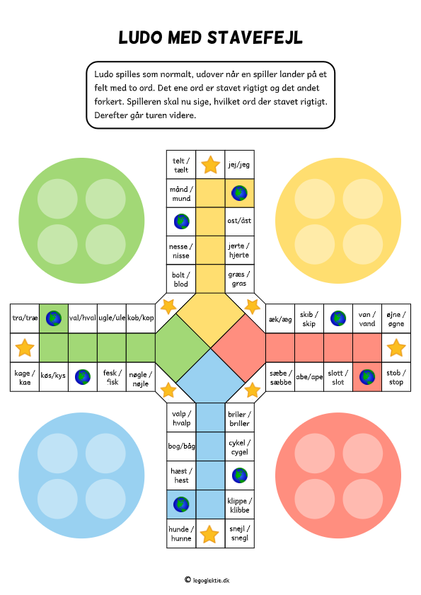 Spil og andre aktiviteter er en sjov mรฅde at lรฆre pรฅ! Mange bรธrn kan blive mere motiveret, nรฅr lรฆringen bliver pakket ind i et spil. Her er der fokus pรฅ nogle stavefejl, som bรธrn ofte kan lave. Det er bl.a. stavefejl med konsonant- og vokalforveksling, dobbeltkonsonanter og stumme bogstaver.